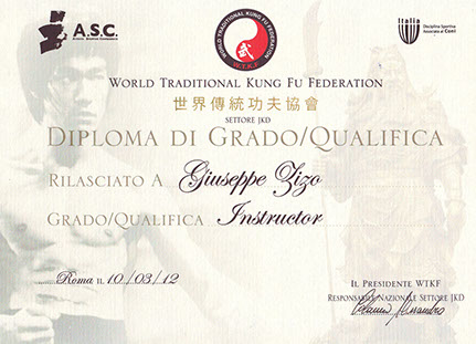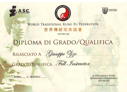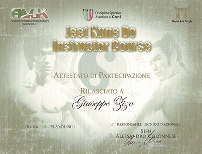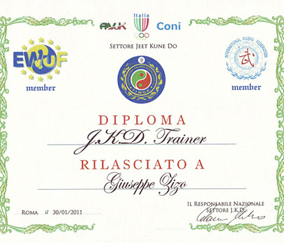 MAESTRO DI JEET KUNE DO RICONOSCIUTO DAL CONI CON DIPLOMA NAZIONALE